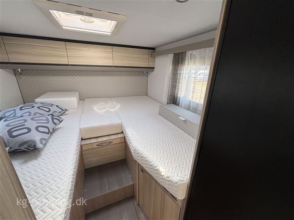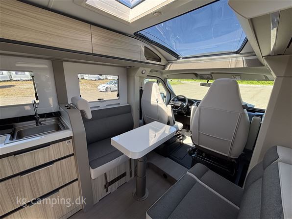 Eksklusiv jubilæumsmodel med alt i komfort og udstyr! Kompakt og letkørt autocamper på kun 6,99 m, med enkeltsenge, luksus interiør, automatgear, panoramatag og moderne sikkerhedspakker. DELUXE modellen har digital instrumentering - automatisk klimaanlæg - adaptiv fartpilot. Den viste vogn er med ekstraudstyr. Denne vogn er spækket med standardudstyr. Fabriksmonteret ekstraudstyr er: Truma combi 6E - 150 L kompressor køleskab - LED lygter.