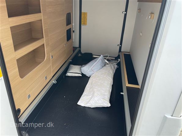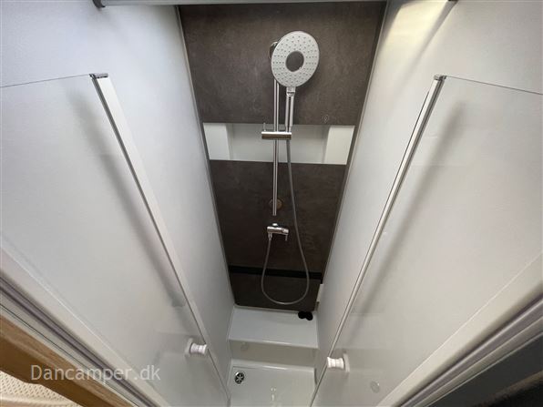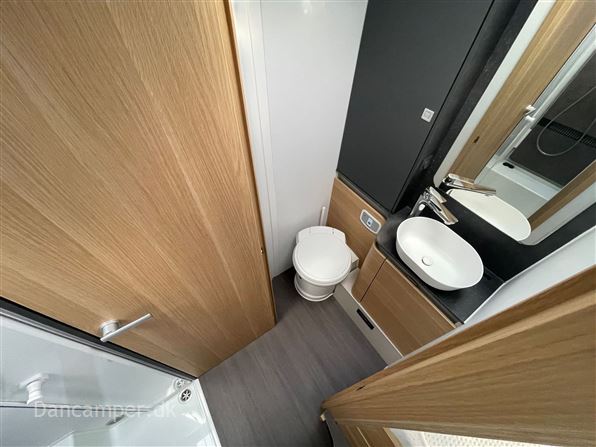 Solceller, 2 X 100Ah lithium, inverter med strøm ud i alle stik, Truma DuoControl, selvstændig brusekabine, Thetford gasovn, gode enkeltsenge, Tv ved siddegruppen, HeoSafe låsesystem på bildel. Tv, Cykelholder samt mekaniske støtteben.