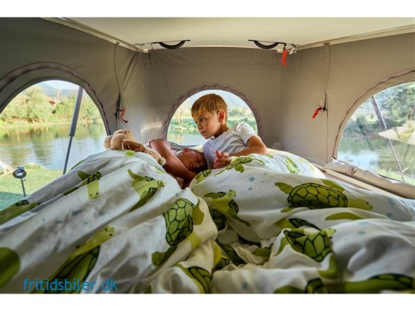 Kan leveres med pop-up tag eller køje løsning så der bliver 4 store sovepladser