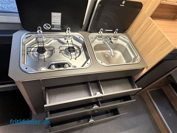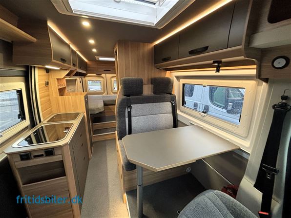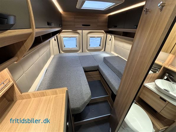 Bravia 636 – Eksklusiv camper med automatgear og håndbygget kvalitet Drømmer du om frihed på fire hjul uden at gå på kompromis med komfort og design? Så er Bravia 636 det oplagte valg. Denne luksuriøse camper er udstyret med automatgear, elegant Vega-interiør og Koala-tekstiler, som tilsammen skaber en moderne og hyggelig atmosfære. Indretningen byder på langs gående enkeltsenge med trappe imellem, et stort badeværelse med separat brusekabine og toilet – alt i et stilrent og funktionelt design. Camperen indeholder alt, du behøver for at nyde rejsen: 8" touchskærm med Apple CarPlay og Android Auto Gasalarm for øget sikkerhed Udvendigt gasudtag til grill Markise og bakkamera 90 liters køleskab med fryseboks Køkken med store soft-close skuffer Bravia er kendt for sit flotte håndværk, produceret på deres egen møbelfabrik, hvor kvalitet og design går hånd i hånd. Uanset om du skal på storbyferie, weekendtur eller længere eventyr, giver Bravia 636 dig komfort, fleksibilitet og frihed – alt samlet i én camper. Kun fantasien sætter grænser for, hvor du kan tage hen.