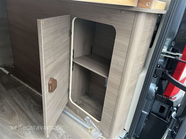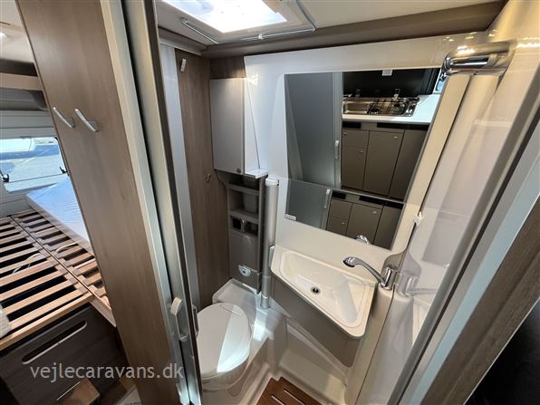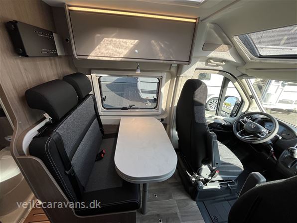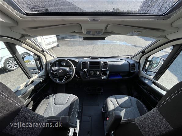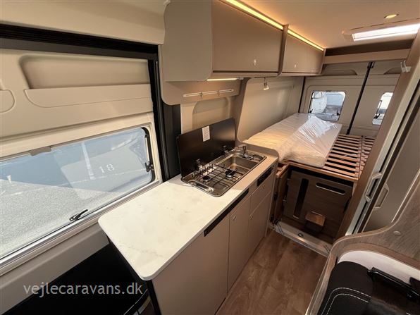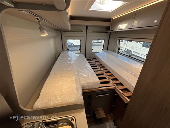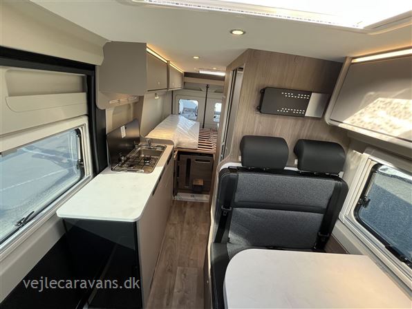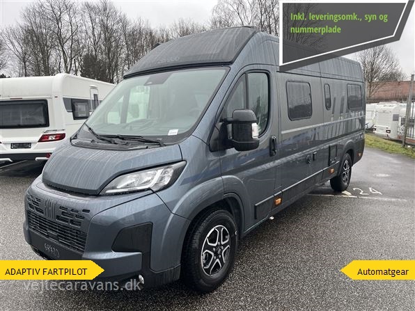 Ny 2026 Camper van med enkeltsenge på langs, toilet med svingbar væg til bad, køkken med køleskab og 2 gasblus samt hyggelig siddegruppe. Vognen er på Fiat undervogn med 140 hk. motor og automatgear. Vognen er med følgende udstyr: Pro+ udstyrpakke med Seitz rammevinduer og markise, Safetypakke med adaptiv fartpilot, kabelforberedt til bakkamera og solceller, dæktrykssensor, Truma Combi 6e varme med elpatron, Sengeombyg i siddegruppe, 12v forberedt med tv-holder, Chassispakke med elektronisk parkeringsbremse. Prisen er inkl. leveringsomkostninger og nr. plader.