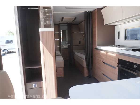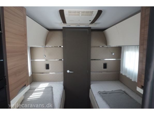 Enkeltsengs campingvogn med alde centralvarme og vandbåren gulvvarme. 2 enkeltseng med løftbar hovedgær. Toilet på tværs af bagenden af campingvognen, med bruser i højre side, og toilet i venstre side væk fra fortelt. Stor rundsiddegruppe med læder under panoramavinduet. Køkken med 3 gasblus, skuffer, gasbageovn, emhætte, samt et køleskab på 167 ltr. med separat fryser. Lige indenfor døren er der et indstikskab til overtøj. Der er monteret Truma XT mover, aicondition, duocontrol, ATC. Der medfølger et Kampa sun shine air pro 500 solsejl. Prisen er inkl. leveringsomkostninger og nr. plade.