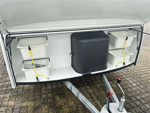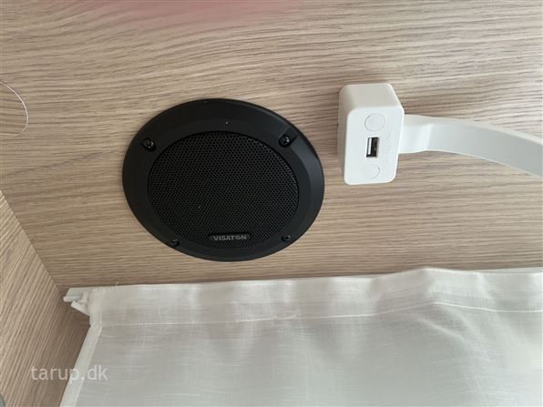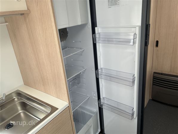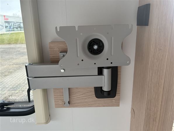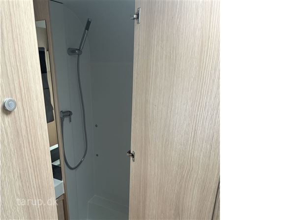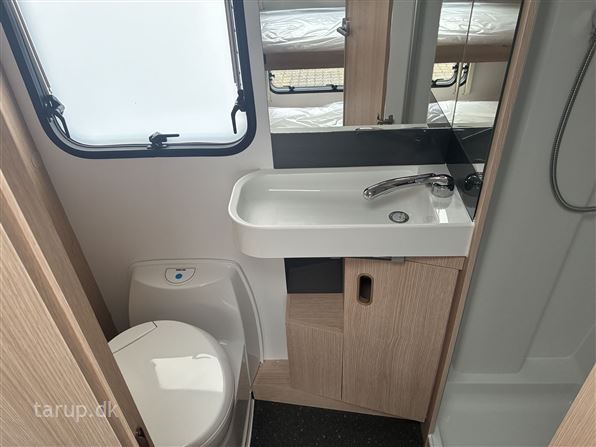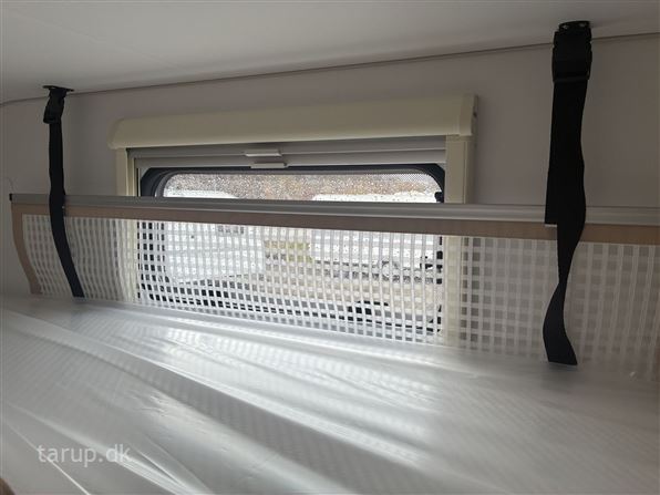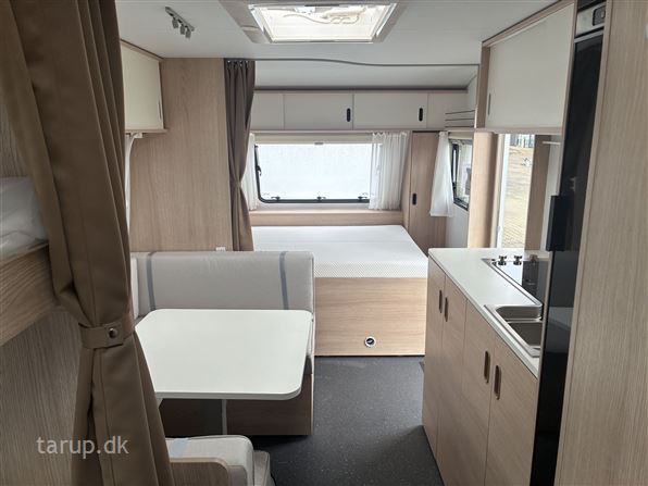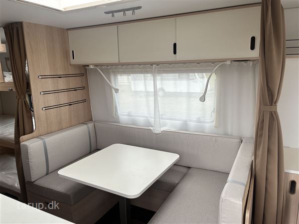 Dobbeltseng og 3 køjer, rundsiddegruppe, el-gulvvarme, myggenetsdør, TV-holder, Bluetooth controller, blæser-varme, stort 142 l. køleskab Plads til 7 personer, Haglsikret tag front og bagende, stabilisator og støddæmper, tempo 100 forberedt.