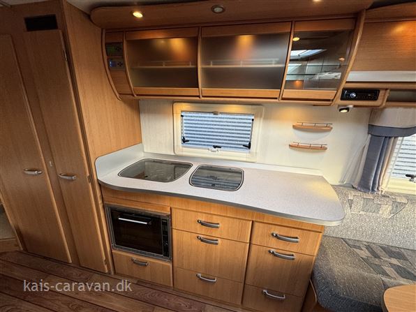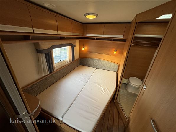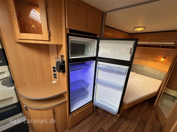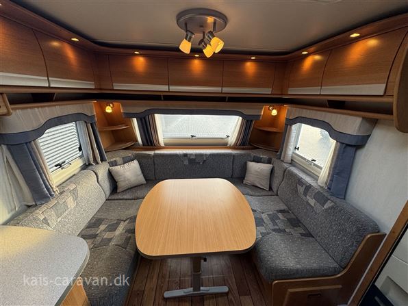 Helårs campingvogn, med både Centralvarme, Vandbåret gulvvarme. Vognen har fransk dobbeltseng samt toilet rum i bagenden af vognen, midt i vognen køkken med skuffer, gasbageovn, emhætte og 189 l køleskab, forrest i vognen stor rundsiddegruppe. Vognen er udstyret med Truma mover, Litium batteri, booster, Klimaanlæg, Thule Cykelholder, Universal 420 fortelt, Alufælge, Gas duo omskifter, Gasudtag, By vand, Atc trailer control, prisen er incl leverings omkostninger