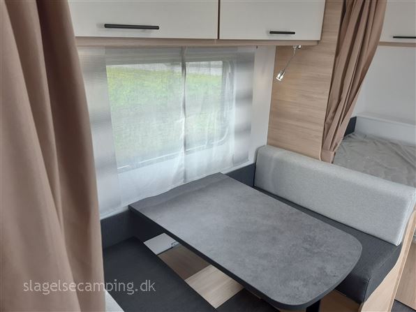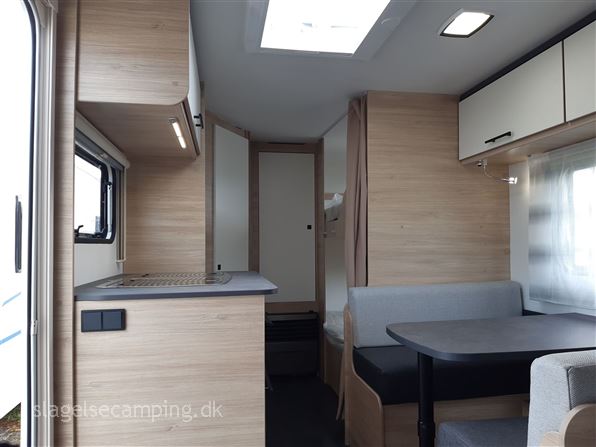 Lækker køjevogn med lav vægt. Vognen er monteret med Pack Safety (AKS3004 mv), truma varmeovn, Pack arctic (blæservarme og gulvvarme), Pack Cosy (Serv.klap og myggdør mv), Pack Shower (Vandvarmer, brusebad + spildevandstank) samt gastilslutning. I alt er der monteret ekstraudstyr for for 34.180 kr. der er tillagt vognens pris. Prisen er desuden incl. leveringsomkostninger og nummerplade.