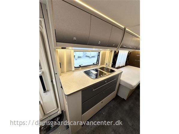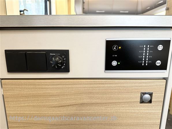 Vognen har endvidere Truma Combi 4 fyr, fuldautomatisk Enduro mover, el gulvtemperering, el-støtteben fra Enduro, el Thule Omnistore markise samt et Isabella Commodore North 3m. fortelt med CarbonX-stænger.