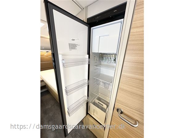 Midt i vognen findes lækkert køkken med masser af opbevaringsplads samt stort køleskab, overfor er der toiletrum.