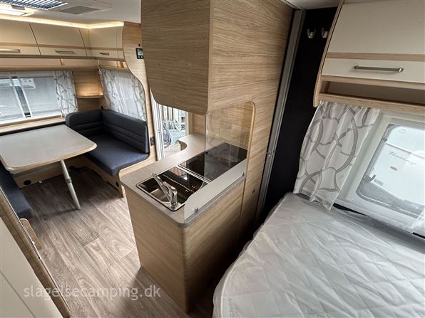 Denne Nye Fendt Bianco Activ 495 SFE er den nye 2025 model indretning fra Fendt. Vognen er indrettet med fransk seng, med fri adgang fra benenden som vender op til køkkenet. Stor god sidegruppe med fast bord mod front af vogn. Køkkenet er som fritstående vnkel køkken lige ved døren. Vognen er monteret med Truma combifyr og der derudover leveret med følgende ekstraudstyr: 2000 kg aksel, Myggenetsdør, Deko pakke, gulv temperreing, Lys pakke, Faconsyet Lagen til sengen samt gastilslutning. Alt sammen til en merpris på 24.650 kr. der er tillagt vognens pris. Prisen er inkl. leverings omkostninger og nummerplade.