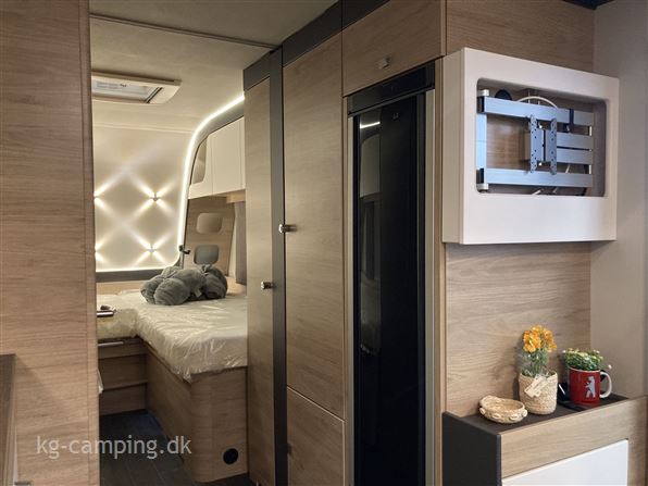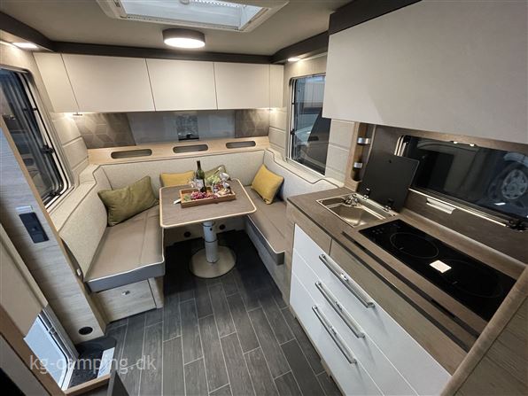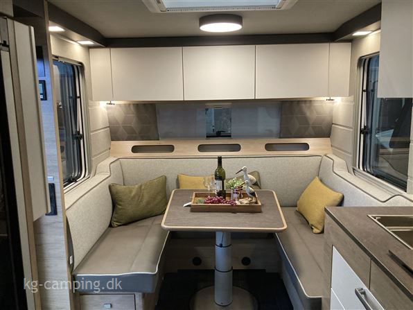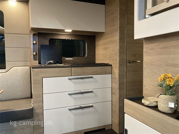 Denne vogn er udstyret med Sengeudvidelse, Ambiente belysning, Eksteriørpakke (Trækstangsafdækning, Dør med flerpunktslåsning, Åbningsbegrænsning / døråbner med gasfjeder, Vindue med plisse-mørklægning, integreret paraplyrum, multifunktionel taske i TABBERT design, Markisestrimmel inkl. LED-belysning i dørsiden) og Interiørpakke (Myggenetsdør, Vandstandsviser, Komfort-sove-system med fleksible tallerkenlameller og WaterGEL-madras, puder og tæpper). Se videoen nederst på siden.