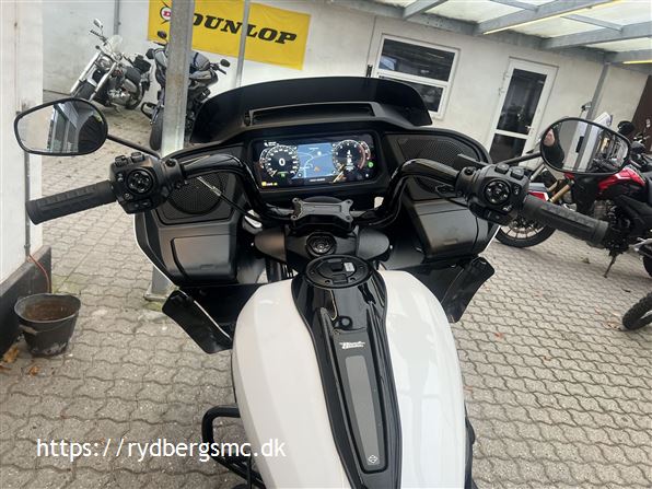 Road Glide har en aerodynamisk hajnæseformet kåbe og en vandkølet Milwaukee-Eight™ 117-motor, der yder 175 Nm drejningsmoment, mens den reducerede vægt gør håndteringen mere responsiv. Med tilpassede køretilstande, Bluetooth-tilslutning og en 312 mm berøringsskærm tilbyder Road Glide en raffineret blanding af teknologi, stil og kraft.